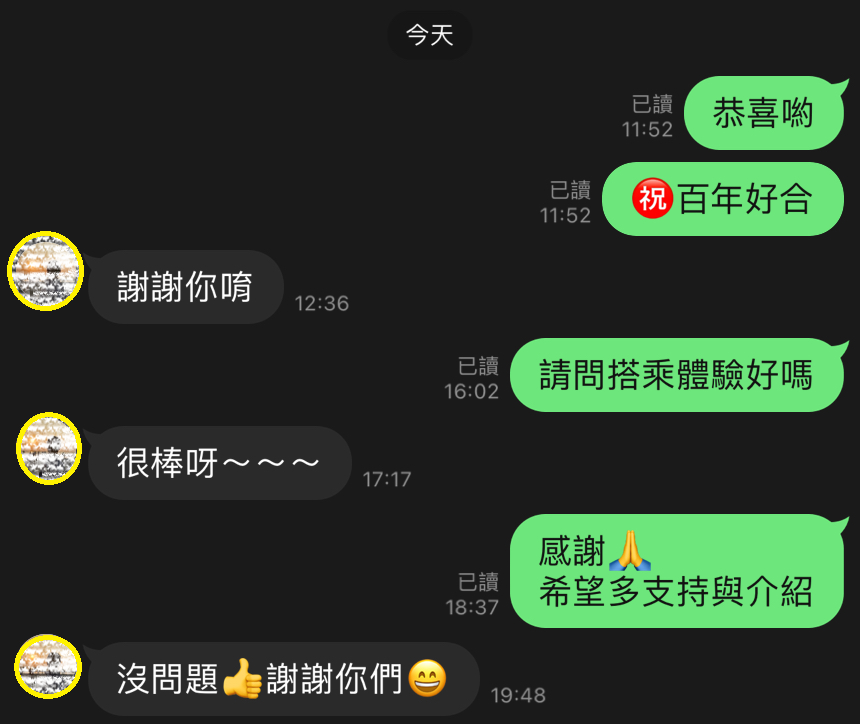 一路上,小塏主動與乘客交流,分享沿途風景和桃園機場的實用資訊。新婚夫妻對他的細心和熱情大加讚賞,甚至在行程結束後與他合影留念。這次經歷讓小塏更堅定了自己的職業選擇,也為他日後的服務奠定了信心。